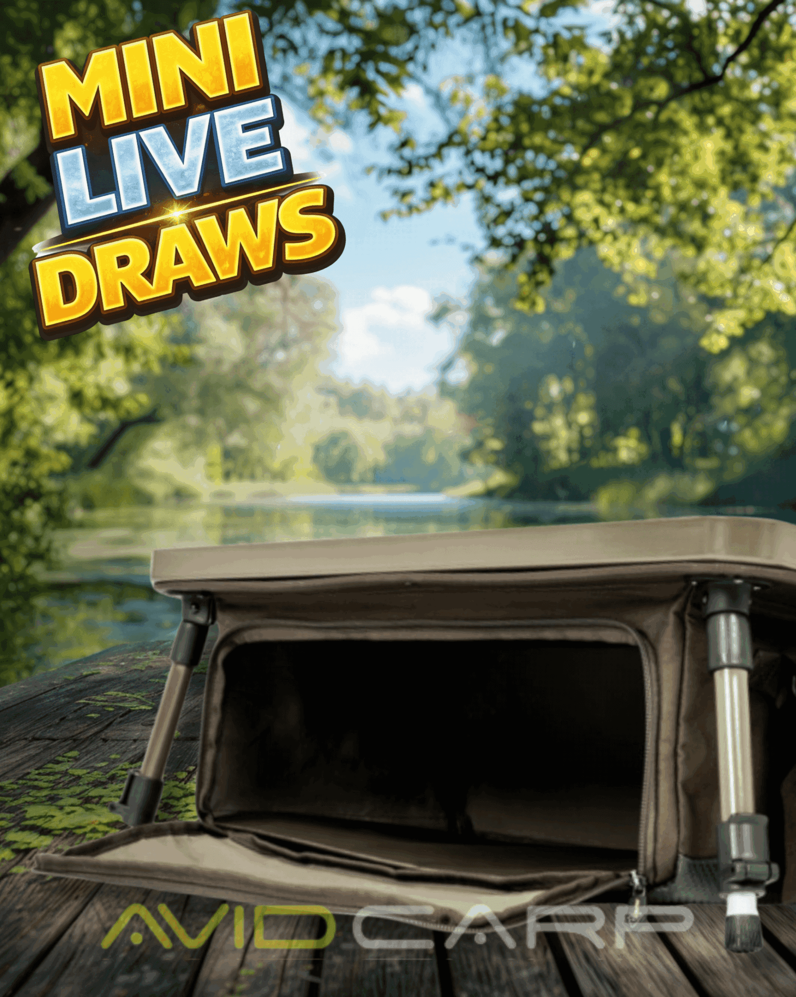 Skip to contentMINI LIVE DRAWS AVID BIVVY ORGANISER XL MAIN PRIZE